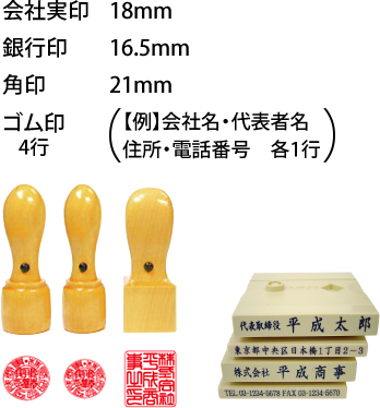実印・角印または銀行印・ ゴム印【3点】 | +角印または銀行印 【4点】 |